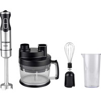 | Комплектация | • Моторный блок• Блендерная насадка• Насадка для взбивания• Кухонный процессор (крышка-редуктор, нож, диск с лезвием для шинковки, чаша)• Мерный стакан• Руководство по эксплуатации• Гарантийный талон |