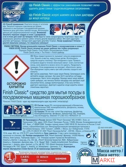 Markit » Средства для посудомоечных машин » Порошок для посудомоечной машины Finish Classic (2.5 кг)
