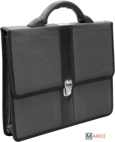 Портфель украшен вставкой из кожзама. Внутри 2 отделения для хранения документов формата А4.
