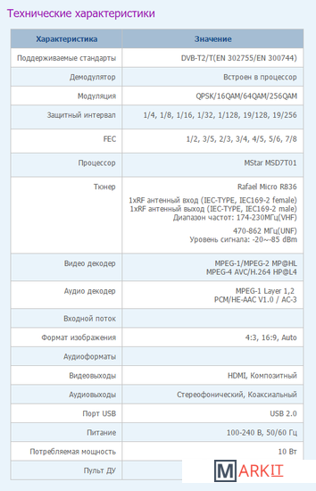 | Стандарт | DVB-T, DVB-T2 |