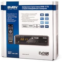 DVB-T/T2 тюнерs SVEN поддерживают телевидение высокой четкости 720p, 1080i, 1080p, имеют удобный пульт дистанционного управления, цифровой коаксиальный (SPDIF) выход и встроенный USB-порт, позволяющий подключать внешние запоминающие устройства для записи и хранения медиаконтента. Модель SVEN Easy See 149 LED выпускается в металлическом корпусе. Она оснащена LED дисплеем, на котором в режиме ожидания отображается время, а в режиме просмотра – номер канала. Данный тюнер имеет компонентный разъем, а также разъемы CVBS (RCA) и HDMI для подключения к телевизору.