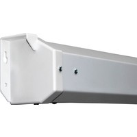 Длина кабеля 5м. Кабель оснащен электрическим переключателем для управления экраном.Мощность электропривода 18 Вт, скорость вращения двигателя 15 об./мин.Корпус экрана шестиугольного сечения выполнен из стали с белым полимерным покрытием. Торцевые заглушки корпуса изготовлены из ударопрочного белого пластика.Нижняя натяжная стальная планка круглого сечения диаметром 13 мм с белым полимерным покрытием.Материалы полотна экрана экологически безопасны, полностью удовлетворяют требованиям пожарной безопасности к строительным материалам и компонентам.