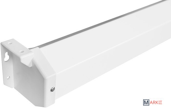 Корпус экрана шестиугольного сечения выполнен из стали с белым полимерным покрытием и ударопрочного пластика.Нижняя натяжная стальная планка круглого сечения диаметром 20 мм с белым полимерным покрытием.Материалы полотна экрана экологически безопасны, полностью удовлетворяют требованиям пожарной безопасности к строительным материалам и компонентам.
