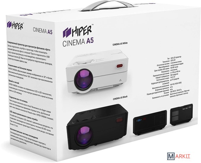 Проектор, шнур питания, пульт ДУ, кабель miniJack-3хRCA, инструкция