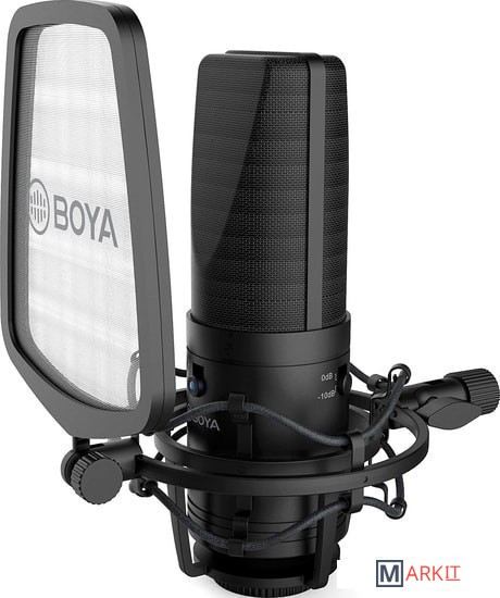 - поп-фильтр- аудиокабель (3-pin XLR - 3-pin XLR)- антивибрационный держатель- документация |
