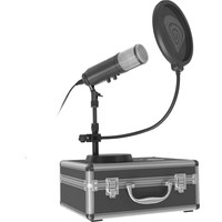 - съемная ветрозащита- поп-фильтр- кабель питания (USB Type-B - USB Type-A)- настольная подставка- металлический кейс- документация |