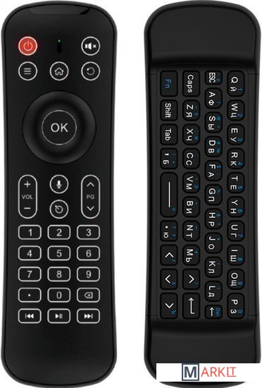 Универсальное средство ввода, совмещающее сразу несколько устройств в одном корпусе. Это одновременно компьютерная беспроводная мышь, не требующая рабочих поверхностей, клавиатура, работающая сразу с двумя самыми востребованными раскладками (русской и английской), а также классический пульт дистанционного управления с инфракрасным передатчиком, который можно научить любым командам ваших старых ПДУ. Владельцы приставок и телевизоров на базе Android TV получают возможность быстрого вызова голосового ассистента.