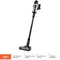 Универсальное применениеRV-UR375 – эргономичная модель, которая из вертикального пылесоса легко трансформируется в ручной компактный пылесос. Устройство не требует подключения к сети, укомплектовано разнообразными насадками и дополнительным гибким шлангом, за счет чего обладает неограниченным радиусом действия и может использоваться для широкого спектра задач:уборки пола и ковровых покрытий,очистки мягкой мебели и домашнего текстиля,уборки карнизов, лестниц, высоких полок, антресолей,ухода за салоном и багажником автомобиля,уборка в труднодоступных и узких местах.Высокая производительностьМощный бесщеточный BLDC-двигатель и литий-ионный аккумулятор 3000 мА*ч обеспечивает высокую производительность пылесоса. RV-UR375 может работать без подзарядки до 75 минут, благодаря чему вы сможете с комфортом навести чистоту даже в просторной квартире.Электронный дисплейОсобенность модели – электронный светодиодный дисплей, который отображает уровень заряда аккумулятора и выбранную мощность. Индикаторы на дисплее также сообщат вам об ошибке установки или отсутствии фильтров, блокировки турбощетки и заполнении контейнера-пылесборника.Регулировка мощностиС помощью кнопки переключения выберите подходящий режим работы:ECO – минимальная мощность всасывания с экономным расходом батареи для продолжительной уборки.MID – средняя мощность всасывания для устранения загрязнений умеренной сложности.MAX – максимальная мощность всасывания для интенсивной очистки ковровых покрытий.AUTO – автоматическая регулировка мощности всасывания в зависимости от степени загрязнения поверхности.Расширенный комплект насадокБольшой выбор сменных насадок позволит эффективно очистить разные зоны. Турбощетка с встроенной подсветкой обеспечит удобную и качественную уборку в местах с недостаточным освещением: под мебелью, в кладовых. Щелевая насадка поможет убрать грязь и пыль с плинтусов и из узких проемов, насадка со щеткой предназначена для одежды, мягкой мебели, автомобильных кресел и домашнего текстиля.Контейнер-циклонПыль и сор, которые попадают в контейнер, под воздействием мощного циклонного потока воздуха остаются в пылесборнике. После уборки его легко отсоединить и очистить.Удобное хранениеВ комплектацию включен кронштейн, позволяющий крепить RV-UR375 к стене в вертикальном положении для зарядки и хранения. Так пылесос занимает минимум места и всегда находится под рукой.