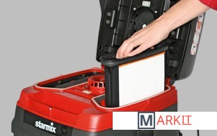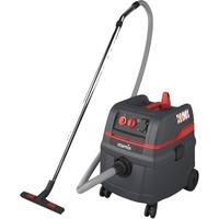 Промышленный пылесос с производительностью 75 л/сек. Предназначен для сбора мелкой пыли, возникающей вблизи инструментов при профессиональных ремонтно-строительных работах. Подходит для высоких нагрузок при повышенном пылеобразовании. Позволяет собрать металлическую и деревянную стружку. Оснащен электрическим двигателем мощностью 1,6 кВт. Агрегат оснащен ударопрочным пластиковым баком объемом 25 литров. Возможна работа без пылесборных мешков. Специальная розетка позволяет подключить и использовать электроинструмент совместно с оборудованием. При перерыве в эксплуатации включается электромагнитная система очистки фильтров.