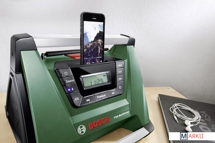 Портативный радиоприемник может использоваться как при проведении ремонтных работ, так и на досуге. Он может питаться от любой батареи Bosch, включая модели 10.8, 14.4 и 18 В, поддерживает проводное и беспроводное подключение к смартфонам и плеерам, имеет несколько ручек для удобной переноски и крепления.