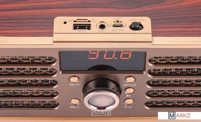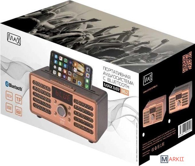 Оснащен встроенной подставкой для размещения смартфона на корпусе приемника.