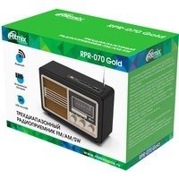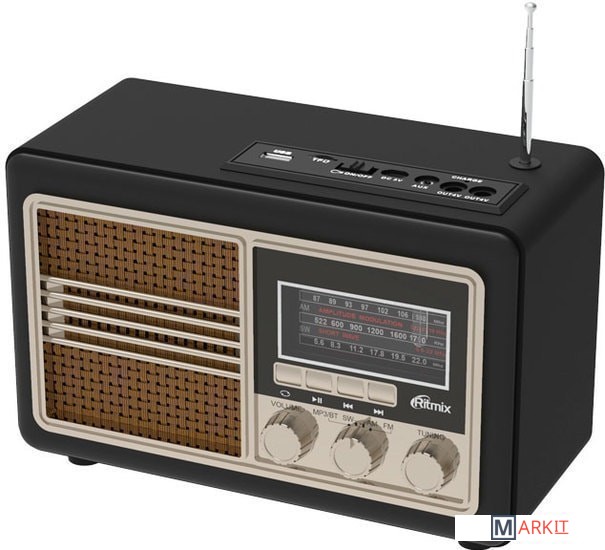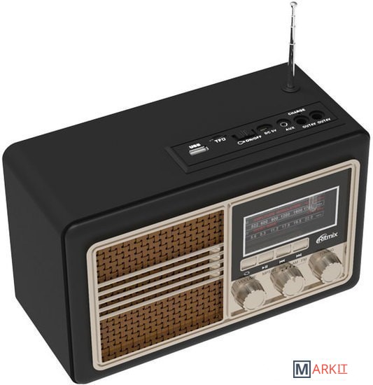 Новый радиоприёмник с дизайнерским корпусом в стиле ретро. Принимает радиопередачи во всех трех основных диапазонах, FM, АМ и SW. Встроенный мр3 плеер, воспроизведение с карт памяти и USB флэш, подключение по Bluetooth и через линейный AUX-аудио вход. Телескопическая антенна. Встроенный заряжаемый аккумулятор, удобные фронтальные кнопки управления и поворотные ручки настройки частоты радио и громкости воспроизведения.