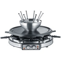 Многофункциональный набор раклет и фондю 2-в-1;Два отдельно регулируемых регулятора температуры;8 деревянных лопаток;8 вилок для фондю;Сетевой шнур: 200 см.