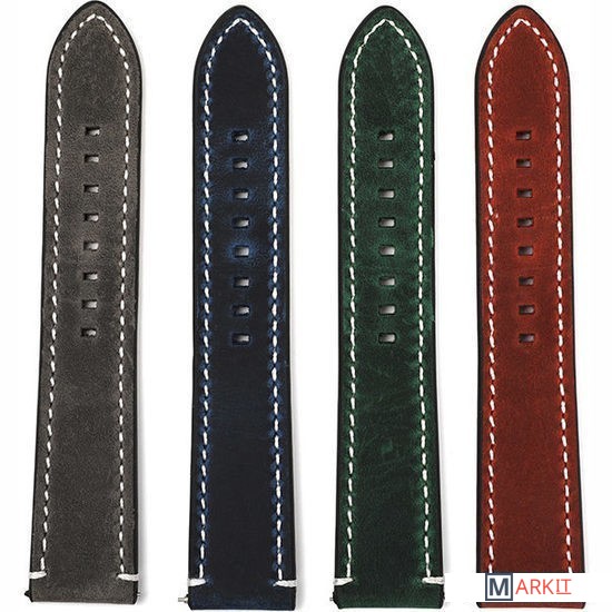 Стильный ремешок в современном "затёртом" дизайне прямой формы не оставит никого равнодушным. Прошит нитью белого цвета, что придает ему еще большую индивидуальность. Ремешок изготовлен из натуральной кожи с металлической пряжкой черного цвета.