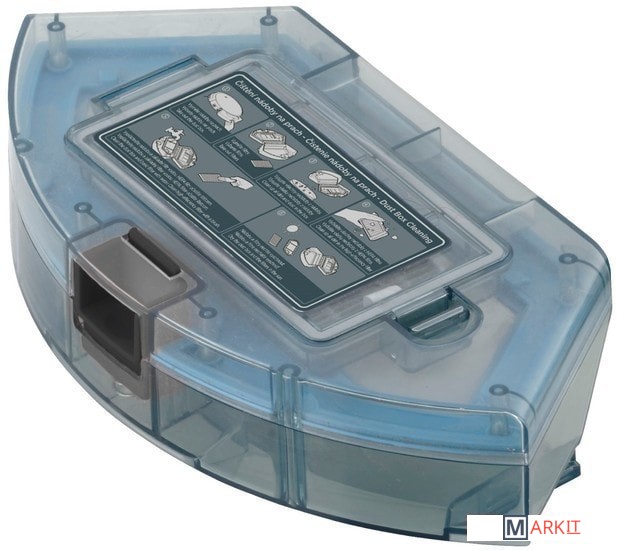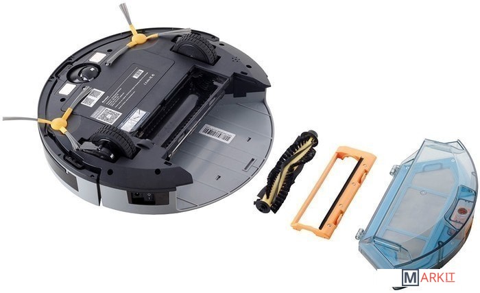 2 боковые щетки + 2 запасные1 протирочная ткань + 1 запасная1 резервуар для воды2 запасных фильтравиртуальная стена (магнитная лента)щетка для чисткидистанционное управлениезарядная станция2 батарейки ААА в упаковке |