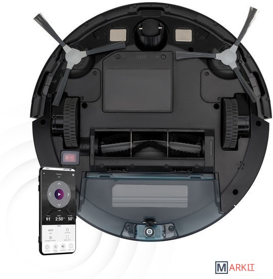Комплектация Робот-пылесос.Контейнер для сухой уборки.Контейнер для влажной уборки.Микрофибра.Пульт ДУ.4 боковые щетки.База для зарядки.Блок питания.Щетка для чистки.