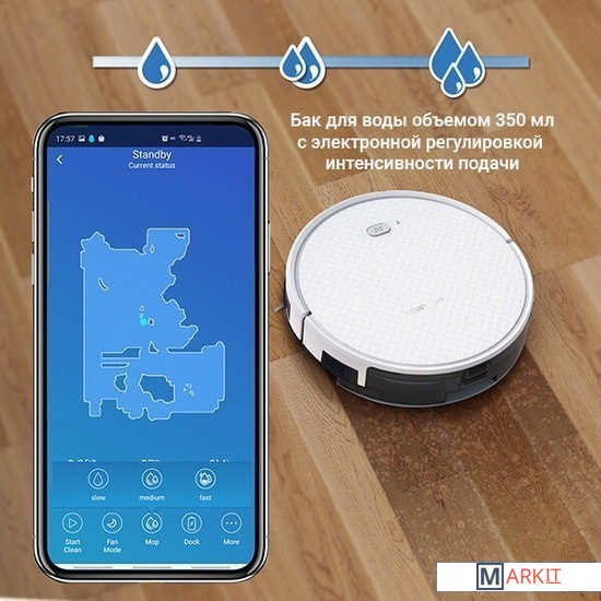 выбор траектории движения, уборка по расписанию, виртуальная стена в комплекте, автовозврат на базу |