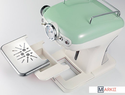 Кофемашина для кофе эспрессо, выполненная в элегантном и изысканном винтажном стиле, украшенная красивыми деталями пастельных тонов с металлической отделкой. Мощность 900 Вт, давление пара 15 бар, фильтродержатель для чалд и порошка кофе (на 1 и 2 чашки), съемные поднос и резервуар для воды предоставляют возможность дома насладиться кофе и капучино с густым и насыщенным вкусом, как в баре.