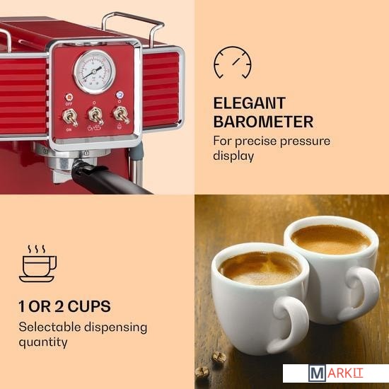 Markit » Кофемашины и кофеварки » Рожковая помповая кофеварка Klarstein Gusto Classico (красный)