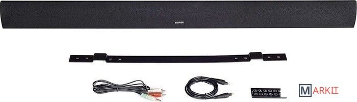 - пульт ДУ- аудиокабель (2RCA - 3.5 мм)- оптический кабель- настенный кронштейн- документация |