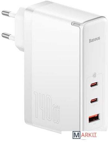 Markit » Зарядные устройства » Сетевое зарядное Baseus GaN5 Pro Fast Charger 2C+U 140W EU (белый)
