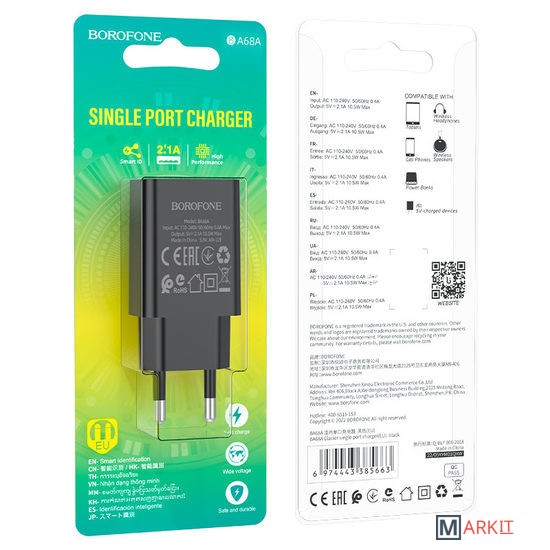 Markit » Зарядные устройства » Сетевое зарядное Borofone BA68A (черный)
