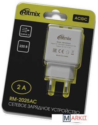 Markit » Зарядные устройства » Сетевое зарядное Ritmix RM-2025AC (белый)