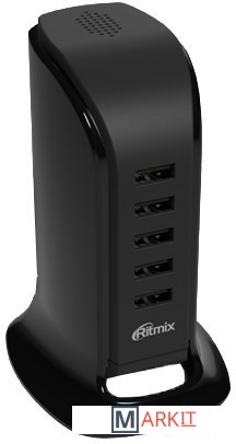 Ritmix RM-5055AC — универсальное сетевое зарядное устройство с током 2,1 А на каждый разъем USB (максимальный суммарный ток, когда все разъемы заняты — 5,8 А). Подходит для любой современной портативной техники с возможностью зарядки от USB-порта (смартфоны, телефоны, планшеты, электронные книги, камеры, игровые приставки, мини-колонки, наушники, видеорегистраторы). Имеет пять разъемов USB, в комплект включен мягкий шнур питания, позволяющий поставить зарядку в удобном месте, не привязываясь к расположению розетки. В продаже имеется в двух цветовых исполнениях, черном и белом.