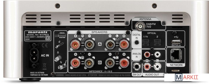 Сетевой CD-ресивер Marantz M-CR612 Melody X представляет собой законченное решение для создания современной стереосистемы. К этому аппарату нужно только подключить акустику, а все необходимые источники сигнала в нем уже предусмотрены. Хотя, при желании, к Marantz M-CR612 Melody X можно подключить и различные внешние проигрыватели. Marantz M-CR612 Melody X оснащен четырехканальным усилителем, поэтому может работать на две пары АС (с независимой регулировкой громкости для каждой) или на одну пару с удвоенной мощностью. Marantz M-CR612 Melody X оснащен функциями сетевого стриминга. Устройство может подключаться к сети по Ethernet или Wi-Fi и воспроизводить музыку с локальных источников, а также через интернет-сервисы. Также в Marantz M-CR612 Melody X имеется поддержка фирменной мультирум-технологии HEOS.