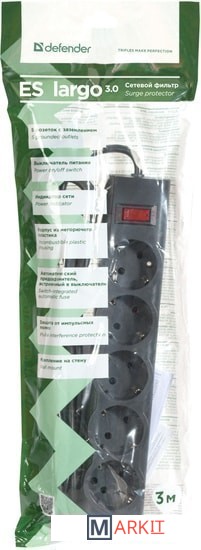 Markit » Стабилизаторы, сетевые фильтры, удлинители » Сетевой фильтр Defender ES largo 3 (черный)