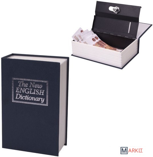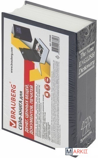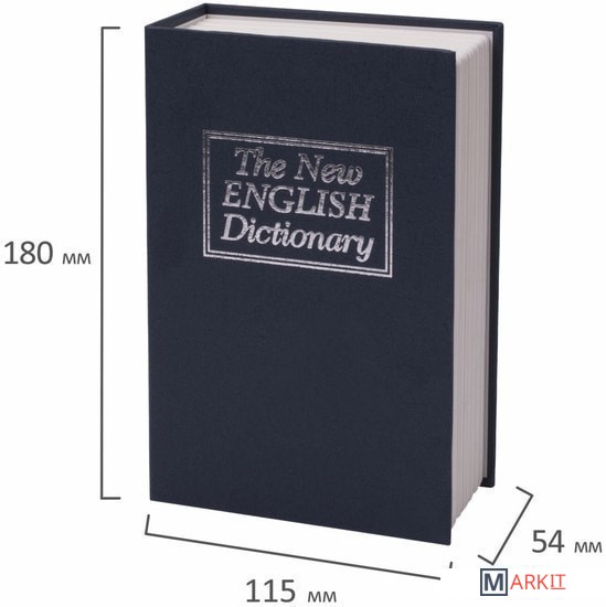 Ящик из прочной стали с ключевым замком BRAUBERG. Используется для ограничения доступа посторонних лиц. Незаметен на книжной полке дома и в офисе. Отлично подойдет в качестве подарка или сувенира.Ящик стилизован под книгу «Английский словарь». Обложка выполнена в тёмно-синем цвете. Книга-сейф — это металлический бокс в виде ложной книги. Предназначен для хранения мелких ценных вещей: документы, медикаменты, печати, мелкая наличность. Оригинальный, удобный бокс, который можно использовать как тайничок: бокс маскируется под книжку, незаметен среди других книг на полке. Главная особенность такой вещи в том, что выглядит она весьма оригинально, благодаря чему нравится многим. Фраза «Книга — лучший подарок» еще никогда не была так актуальна.Размеры 54x115x180 мм. 1 отделение. 2 ключа в комплекте.
