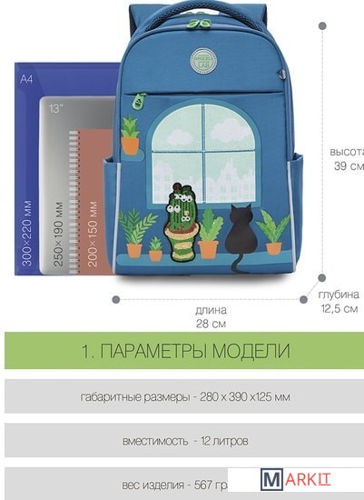 | Тип школьного рюкзака | рюкзак |