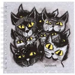 Markit » Канцтовары » Бумажная продукция » Блокноты » Скетчбук-тетрадь на гребне «Канц-Эксмо», 195 x 195 мм, 80 л., «Черные коты (графика)»