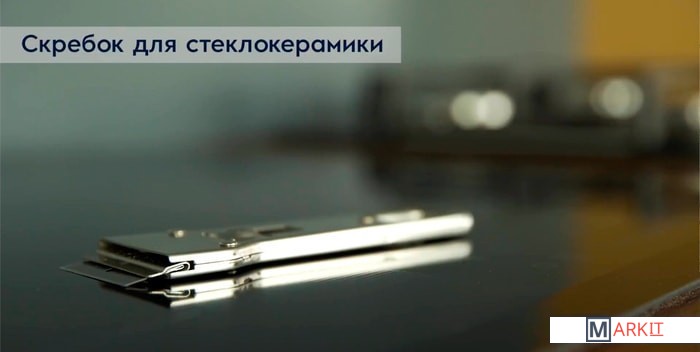 Скребок для стеклокерамических поверхностей позволит быстро ибезопасно удалить наиболее пригоревшие загрязнения. Сменное лезвиепрячется внутрь корпуса, повышая безопасность использования.