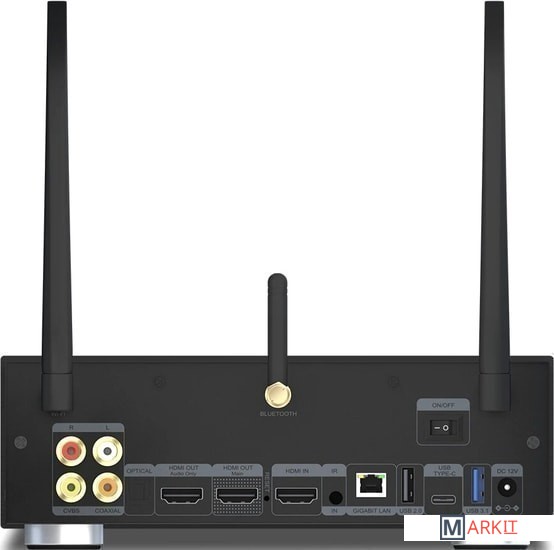 - ИК пульт ДУ- Bluetooth пульт ДУ- батарейки для пультов ДУ (4xAAA)- одна Bluetooth антенна- две Wi-Fi антенны- адаптер питания- два кабеля питания (US/EU)- HDMI кабель- документация