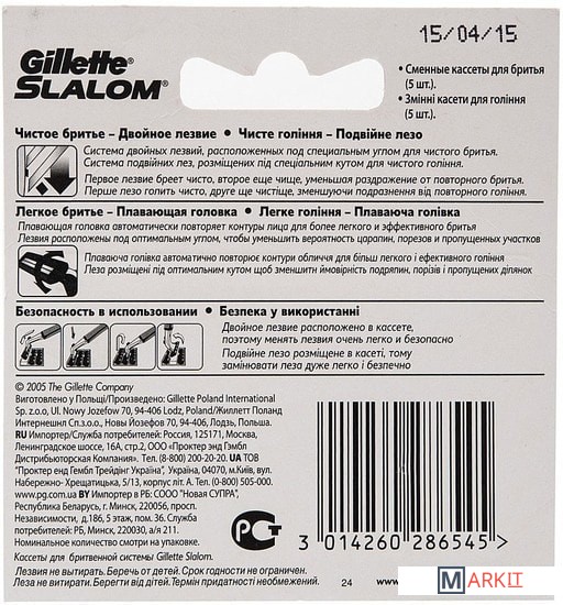 Markit » Бритвенные станки и лезвия » Сменные кассеты для бритья Gillette Slalom (5 шт)