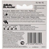 Сменная кассета Gillette Slalom - это бритвенная система с двойным лезвием, расположенным под специальным углом для чистого, легкого и эффективного бритья. Первое лезвие бреет чисто, второе еще чище, уменьшая раздражение от повторного бритья.