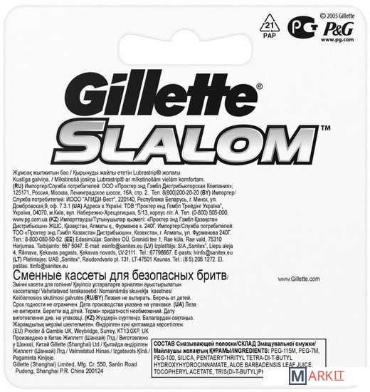 Markit » Бритвенные станки и лезвия » Сменные кассеты для бритья Gillette Slalom Lubrastrip (5 шт)
