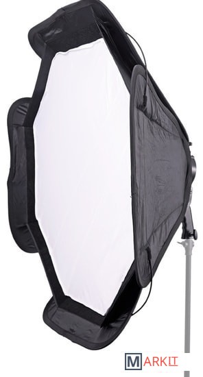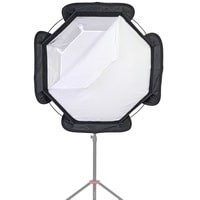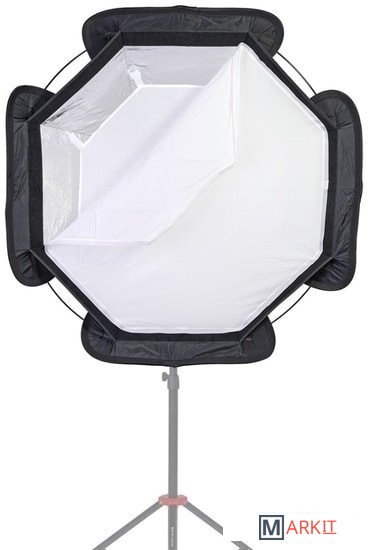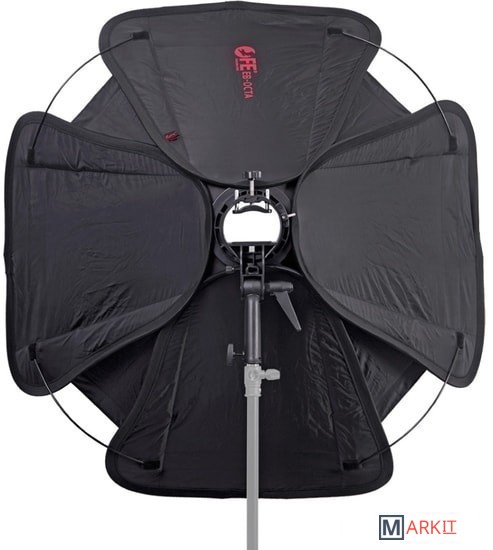 Falcon Eyes EB-95 Octa - быстроскладной софтбокс диаметром 95 см с кронштейном для накамерных вспышек. Фотографы-стробисты по достоинству оценят конструкцию входящего в комплект кронштейна, соответствуя принципу "все-в-одном", кронштейн является универсальным крепежным устройством, совместим с любой накамерной вспышкой и позволяет устанавливать насадки Bowens. Крепление Bowens обеспечивает совместимость с большим разнообразием светомодифицирующих аксессуаров, например: рефлекторы, портретные тарелки, софтбоксы, конусы и т. д. На кронштейне находится отверстие для установки зонтика и удобная рукоятка для регулировки направления освещения. Быстрый и надежный монтаж вспышки, не требуется использование липучек Велкро, нет нагрузки на "горячий башмак", резиновые вставки на зажиме препятствуют появлению царапин на корпусе вспышки.