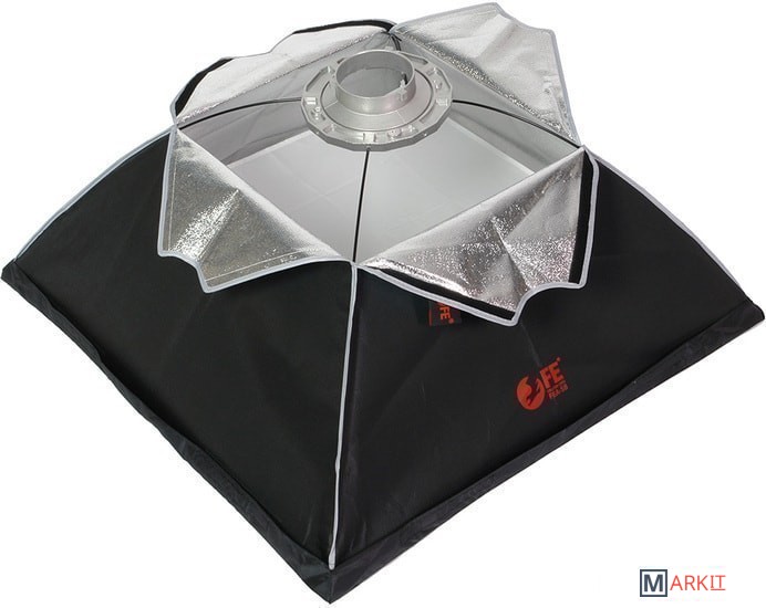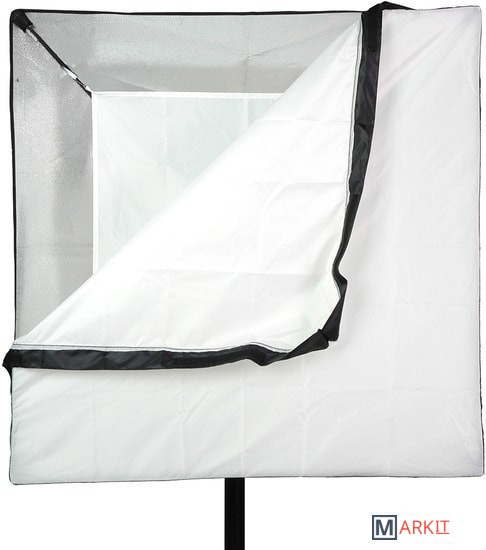 Софтбокс для импульсных источников освещения. Размер 75х75 см, отражающая поверхность серебро, байонет Bowens (байонетное кольцо сменное).Стойка в комплект не входит.