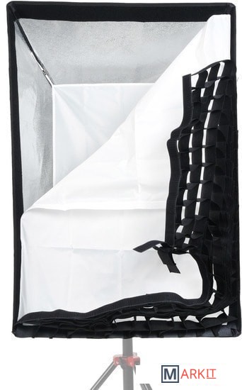 Прямоугольный складной софтбокс с байонетом Bowens, для создания мягкого рассеянного освещения без резких теней и бликов. Размер 60x90 см. Отражающая поверхность — «серебро». Тканевые соты в комплекте.