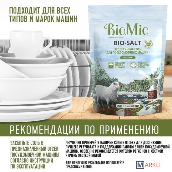 Markit » Средства для посудомоечных машин » Соль для посудомоечной машины BioMio Bio-salt Экологичная 1 кг