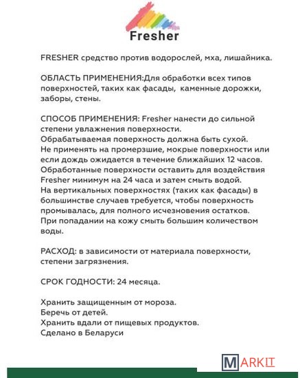 Markit » Средства для посудомоечных машин » Средство для каменных поверхностей Fresher удаление мха, лишайника с каменных поверхностей 750 мл