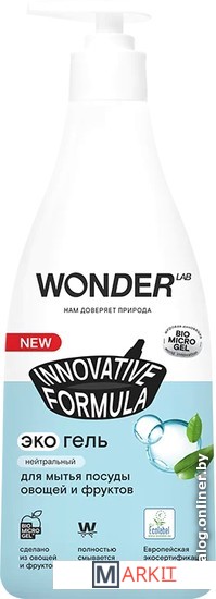 Средство для мытья посуды WONDER LAB обладает нейтральным ароматом и подходит для людей чувствительных к лишним запахам. Гель для посуды эффективен в любых условиях, работая и в холодной, и в горячей воде. Благодаря гелеобразной текстуре, средство экономично расходуется и отлично пенится. Средство полностью смывается в считанные секунды, удаляет жир, остатки пищи, неприятные запахи от рыбы и других продуктов. Не оставляет после себя разводов на посуде и придает её блеск. Гель подходит для мытья овощей и фруктов, смывая поверхностные консерванты и внешние загрязнения.