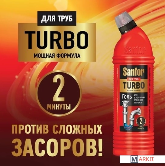 Markit » Средства для посудомоечных машин » Средство для труб Sanfor Turbo для очистки канализационных труб 500 мл