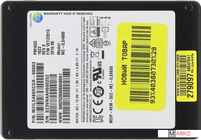 | Объём | 480 ГБ |