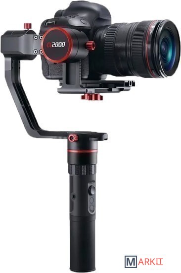 Стедикам для фотоаппаратов FeiyuTech A2000 - это новая модель стедикама для профессиональных фотоаппаратов весом до 2 килограмм. Все отличия кроются в названиие: модель A2000 оснащена более мощными моторами, за счет чего и может работать с проф. камерами. Модель оснащена новым процессором, системой моторов и гироскопом последних поколений. Feiyu Tech A2000 имеет следующие особенности:Вращение на 360 градусов.Вес без аккумулятора 720 грамм.Время автономной работы до 10 часов.Возможность спуска затвора через специальный кабель.Наличие удобного стика для управления положением камеры в 4 плоскостях.Перед тем как выбрать стедикам, ознакомьтесь со списком поддерживаемых моделей:Canon 5D Mark 3NEX-7 (и другие камеры N - серии)SONY A7RIIILCE-7R /ILCE-5100Panasonic Lumix GH4/GH5одружите ваш стедикам со смартфономБлагодаря встроенному модулю блютуз, вы легко можете синхронизировать ваш стедикам с приложением. Через приложение вы легко и быстро можете производить все необходимые настройки и калибровку - больше никаких томительных часов возле компьютера в поиске необходимой информации о процессе калибровки.FeiyuTech A2000 - это стабилизатор нового поколения, актуальный в 2018 году. Он основан на многофункциональной платформе, а такая функция как поддержка мобильного приложения значительно облегчает жизнь тем пользователям, которые впервые сталкиваются с таким устройством. Стоит отметить также и рекордное время съемки, при таких компактных размерах. FeiyuTech A2000 выпускается в двух вариантах. Более доступная модель имеет компактную ручку для захвата и удержания одной рукой, более дорогостоящая модель имеет в комплекте ручку для захвата и удержания двумя руками. Вариант с двойной ручкой подойдет для проф. операторов. Внизу рукоятки есть специальное резьбовое соединение, которое позволит закрепить вашу камеру со стедикамом на любой фотоштатив или другие фото крепления.В комплекте со стедикамом вы получаете удобный чехол для перевозки и хранения с жесткими стенками, а также полноценное зарядное устройство для аккумуляторов от сети. Кроме того, в комплект еще есть и небольшой трипод, чтобы установить стедикам в вертикальное положение на ровной поверхности - большего и не пожелаешь.Преимущества:Лучшее соотношение цена/качество в своем классе.Рекордное время работы от сменных аккумуляторов.Крайне простая настройка и калибровка перед съемкой.Наличие блютуз модуля и поддержка настроек и калибровки через приложении.Возможность установки большинства проф. фото и видео камер весом до 2 килограмм.