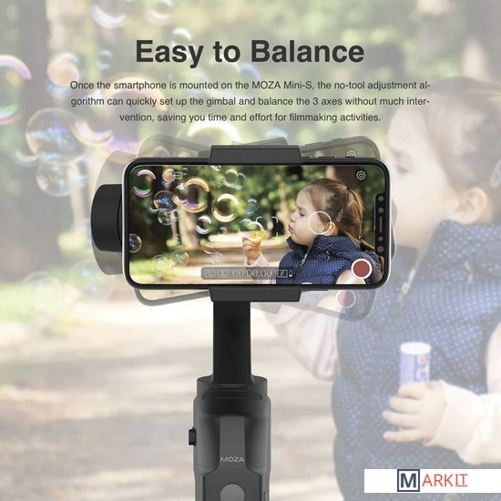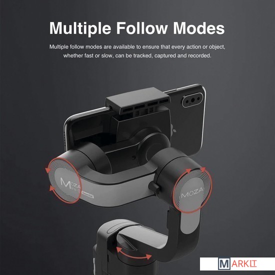 Трехосевой стабилизатор для смартфона. Его главной особенностью является складываемый дизайн, что делает этот подвес компактным и более легким в хранении, чем устройства конкурентов. Он умеет работать как с iPhone, так и с Android-смартфонами. Ширина смартфона должна лежать в пределах от 58 до 88 мм.