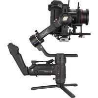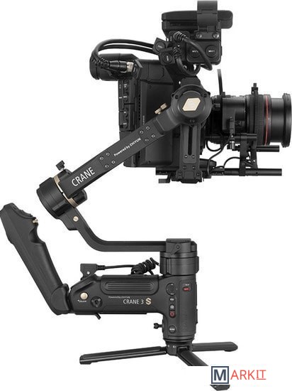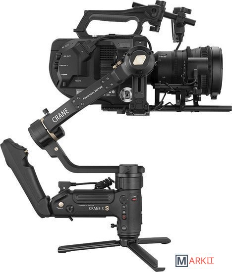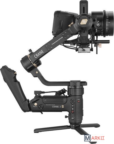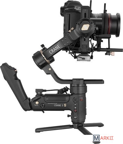 Сверхмощные моторы. Совместимость с кинокамерами.Crane 3S – это не просто апгрейд заслуженного Crane 3 LAB, а его полная реконструкция. В стабилизатор установлены новые сверхмощные моторы, способные стабилизировать приведенную нагрузку до 6.5 кгУдлиненное плечо оси крена для камер большого размераДля связок «камера-объектив» большого размера плечо оси крена стабилизатора можно удлинить, присоединив планку расширения плеча. Для связок «камера-объектив» меньшего размера эту планку можно снять, сделав стабилизатор более компактным.Модульная конструкция для универсальности примененияСтабилизатор оборудован съемной верхней рукояткой, которая может быть двух видов: рукоятка TransMount EasySling Handle, обеспечивающая компактность стабилизатора, и рукоятка SmartSling Handle, оборудованная панелью управления и OLED-дисплеем.Совместим с большим ассортиментом съемочного оборудованияКорпус стабилизатора оборудован большим количеством резьбовых отверстий для крепления широкого набора оборудования – моторизированной тележки, операторского крана, тросового подвеса, видеообвеса Easyrig и других необходимых элементов киносъемочного процесса.Меньше люфтов – больше безопасностиCrane 3S стал еще надежнее удерживать технику – обновленный механизм фиксаторов плеч не позволит им «уехать». Модульная конструкция стабилизатора сочетается с двойными фиксаторами быстросъемной площадки для техники.Увеличенное время автономной работы благодаря технологии PowerPlusCrane 3S обладает разъемом для внешнего питания (25.2 В постоянного тока). Батарейный блок питания TransMount PowerPlus Battery Pack вмещает 6 батарей типа 18650 и обеспечивает увеличенное время работы стабилизатора*, а также может выступать источником питания для других Ваших устройств. *При питании от установленных в корпус батарей стабилизатор Crane 3S способен работать до 12 часов, а при питании от блока TransMount PowerPlus Battery Pack время работы увеличится до 18ч.