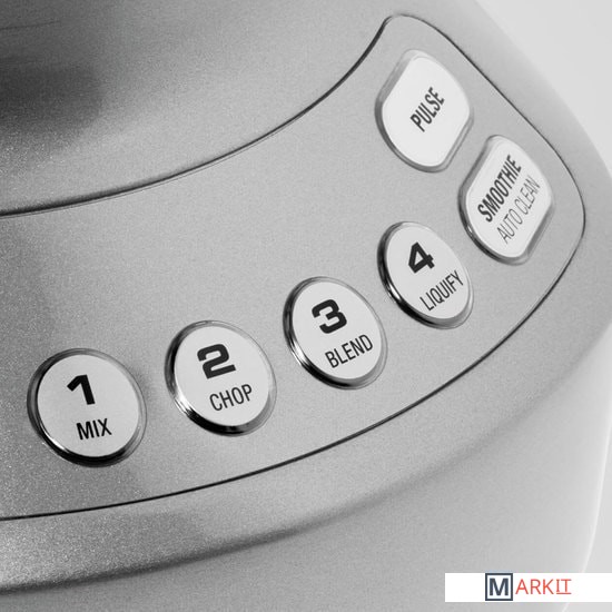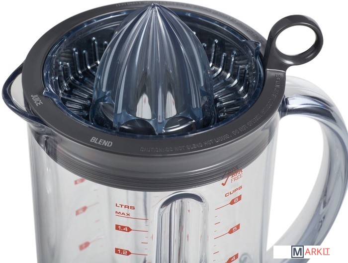 6 режимов смешиванияБлендер оснащен 6 режимами: MIX и BLEND для перемешивания, PULSE для интенсивной обработки, LIQUIFY и CHOP для создания смесей, SMOOTHIE для приготовления смузи.Система ножей для эффективного смешиванияСистема ножей Mini Kinetix эффективно измельчает ингредиенты и равномерно смешивает продукт по всему объему чаши.Насадка для цитрусовыхУдобная насадка для получения соков из свежих цитрусовых фруктов позволяет за считанные минуты приготовить вкусный и полезный напиток.